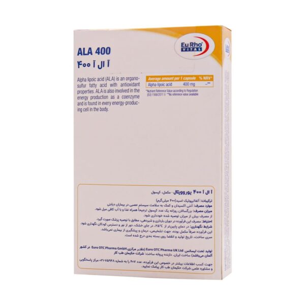 کپسول آ ال آ 400 یوروویتال حاوی 400 میلی گرم آنتی اکسیدان آلفا لیپوئیک اسید بوده که به درمان نوروپاتی دیابتی، بهبود عملکرد بدنسازان، تقویت حافظه و کنترل قند خون کمک می‌کند.